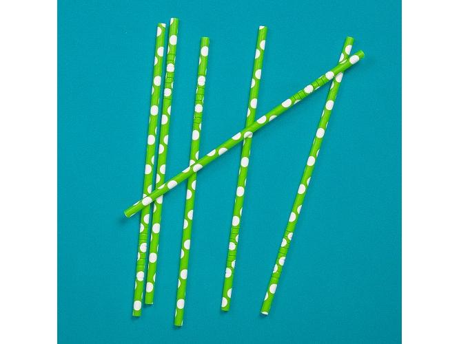 Трубочки кокт. 0,6*23 см. 25 шт/уп. бумажные, с изгибом, зеленые с белыми шарами /1/40/ АКЦИЯ