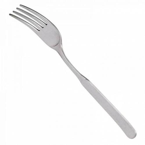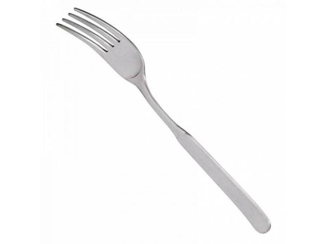 Десертная вилка используется в качестве столового прибора на предприятиях общественного питания и в домашних условиях. Модель оснащена головкой с 4 острыми зубцами, плоской рукояткой с округлым наконечником и зауженной шейкой. Изделие выполнено из высококачественной пищевой нержавеющей углеродистой стали 18/10 (содержание хрома – 18%, никеля – 10%) цвета серебро с шероховатой текстурой поверхности Stonewashed.