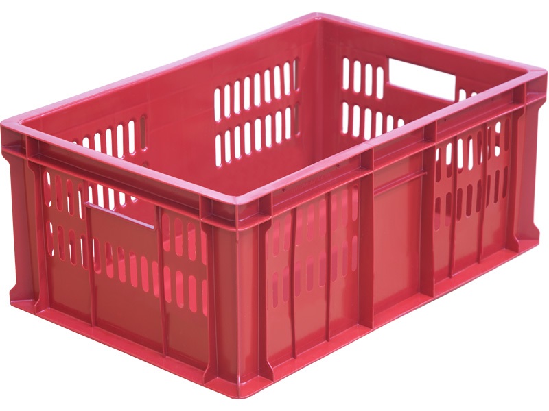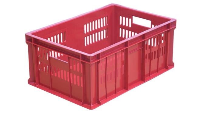 Ящик 600*400*250 мм. колбасный прямой перфорир. дно сплошное, красный (крышка 76402) /1/36/